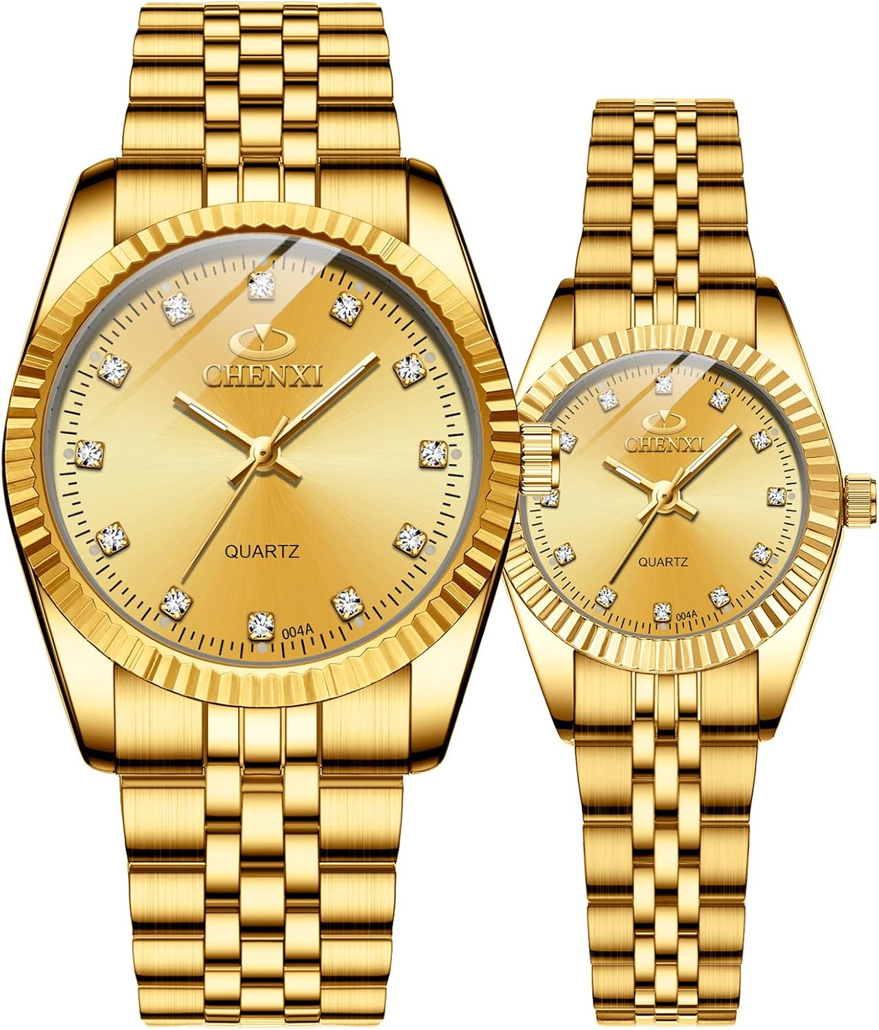 Golden Stainless Steel Waterproof Couple Watches Set for Men and Women